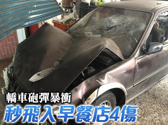 ▲轎車暴衝向撞上早餐店客人,再衝進花店撞破鐵捲門。(圖/記者宋德威攝/下同)
