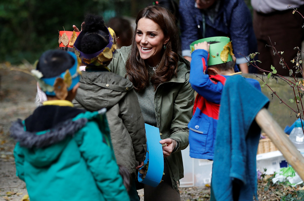 根據英國《每日郵報》報導,凱特王妃首次出訪到該所森林小學,一身輕便又不失禮儀,行頭幾乎來自較為平價的品牌,其中「Penelope Chilvers」的14年老靴子。到達聖士學校 (St. Steven's School)後,帶領其中一個班級到森林中尋找昆蟲和聽小朋友分享生活、故事,凱特王妃也表示,「我時常跟喬治王子和夏綠蒂公主一起在花園裡找小昆蟲,甚至一找就是好幾的小時。」