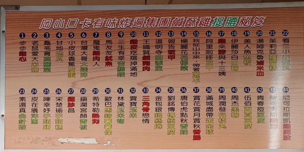 ▼鹽酥雞店的品名都超特別。(圖/岡山口卡有味炸遍集團鹽酥雞)