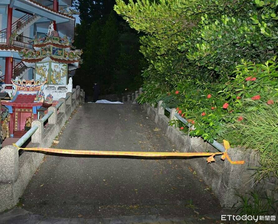 ▲李姓男子被發現趴在鯉魚山龍鳳塔後側,警方到場時已明顯死亡。(圖/社會中心翻攝,下同)