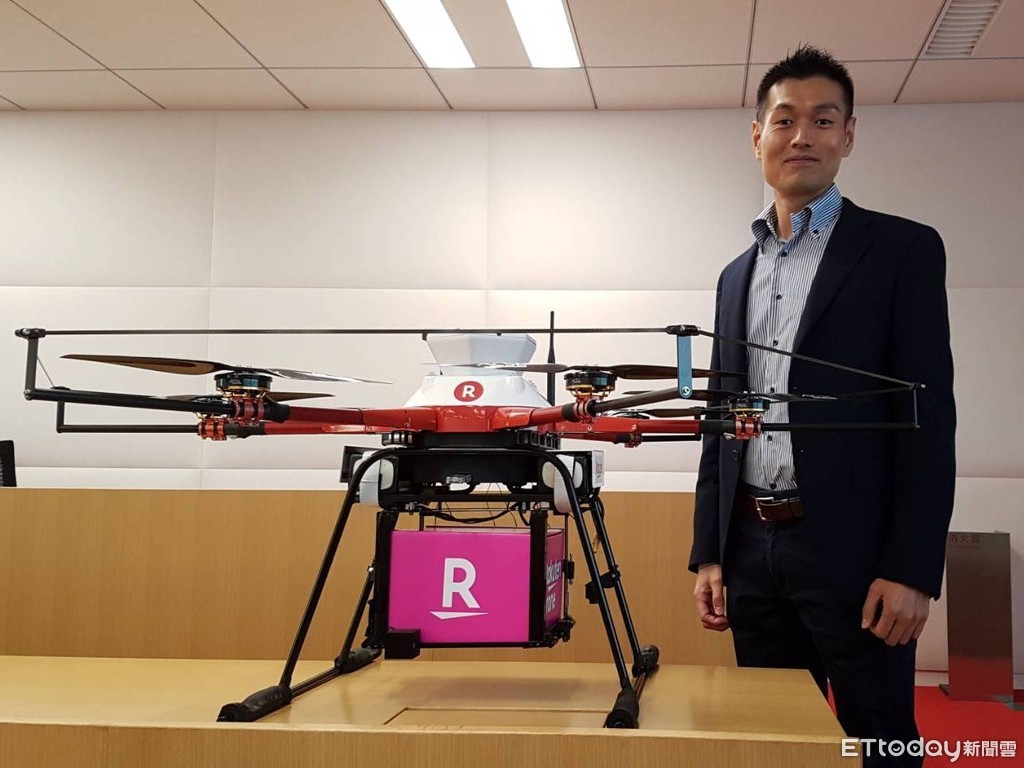 ▲日本樂天自行研發無人機,在測試階段,10分鐘就能把商品送到家,但目前僅運用於偏遠地區和高爾夫球場,未來希望拓展範圍,在城市也能使用。(圖/記者洪菱鞠攝)