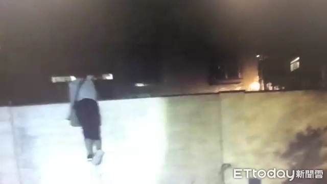 ▲邱姓男子想翻牆逃跑,正好碰上趕來的警方 。(圖/記者洪正達翻攝)