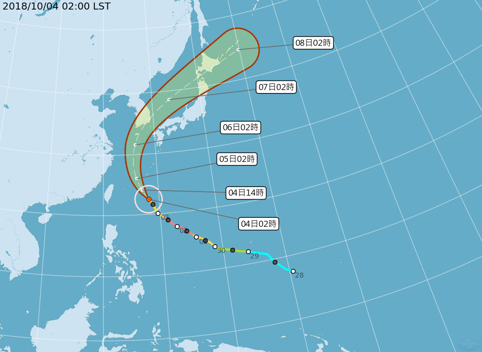 中央氣象局表示,康芮颱風目前在台灣東方600百公里,持續朝西北方前進,預計通過琉球群島,往日韓移動。受康芮颱風影響,目前台灣虎航及中華航空等航空公司陸續宣佈明(5)日取消即延遲往返台灣及沖繩等航班,請出國民眾多加留意。