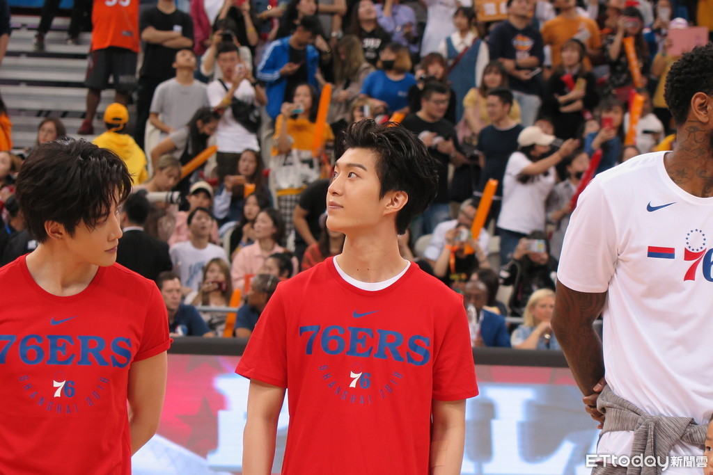 ▲大陸藝人范丞丞(前排右一),今日出席NBA上海球迷日活動。(圖/記者陳政錄攝)