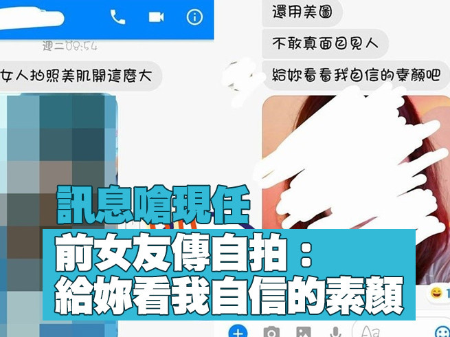 接著再看看前女友傳給原PO的訊息,首先就下馬威「你知道OO自己來跟我談復合嗎?為什麼你要綁著他不放手」、「OO自己親口打給我跟我說她還是愛我」,之後還傳原PO的照片嗆「老女人拍照,美肌開這麼大」、「還用美圖,不敢真面目見人」,並傳自拍照「給你看看我自信的素顏吧!」