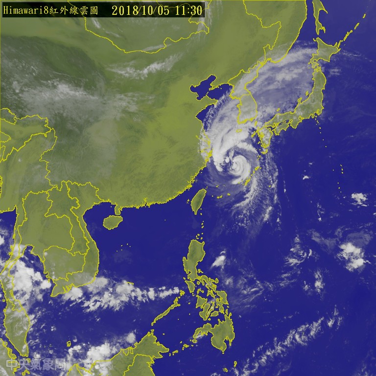 ▲氣象局衛星雲圖顯示,康芮颱風逐漸遠離台灣。