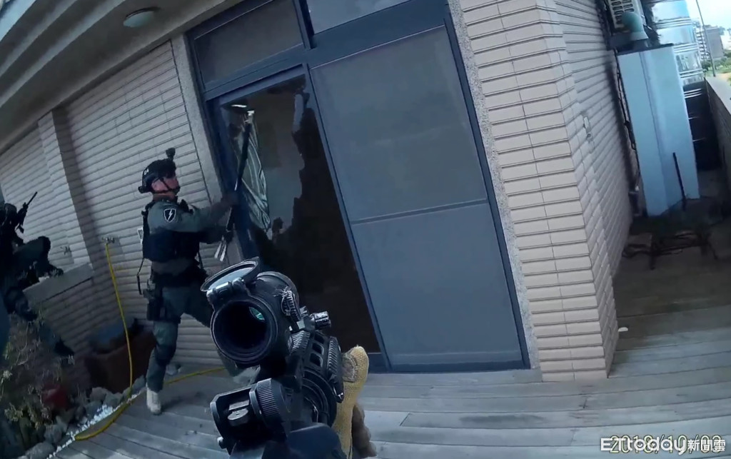 ▼刑事局「除暴特勤隊」由頂樓向下攻堅詐騙機房。(圖/記者柳名耕翻攝)