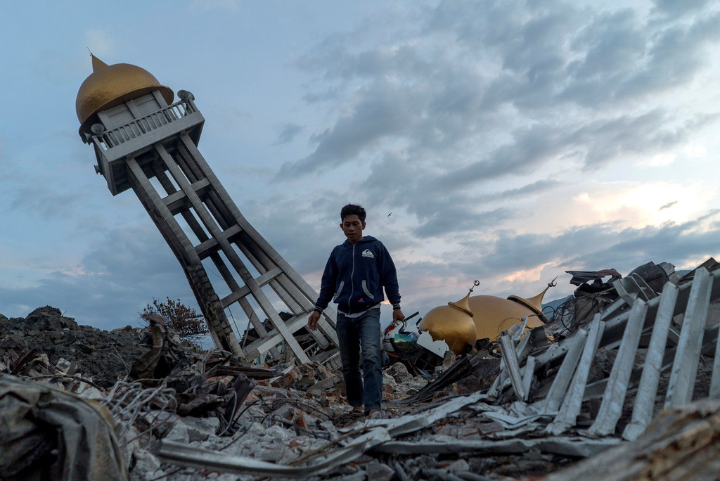 印尼帕盧市(Palu)遭地震與海嘯重創,在當地任職公務員的瓦育丁(Muhammad Wahyudin)面臨15位家人恐已喪生之痛,他雖然悲痛難耐,但仍然發願要幫其他災民找到家人遺體。根據當局公布的數據顯示,截至10月5日上午的死亡人數已達1,558人,失蹤150餘人,並有65,733棟房屋遭到毀損。