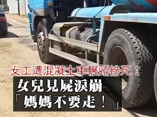苗栗一名56歲林姓女工人在公館國中的校舍改建工地上班時,慘遭正在卸貨的混凝土車輾壓,頭部當場破裂慘死。林女的女兒到場認屍後,直接崩潰地跪在地上大喊「媽媽妳不要走」,讓現場人員鼻酸。