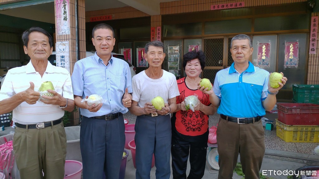 ▲芭樂王蕭振清(中立)被偷300斤參賽的芭樂,5日在芭樂評鑑比賽上仍奪得冠軍。(圖/記者唐詠絮翻攝,以下同)