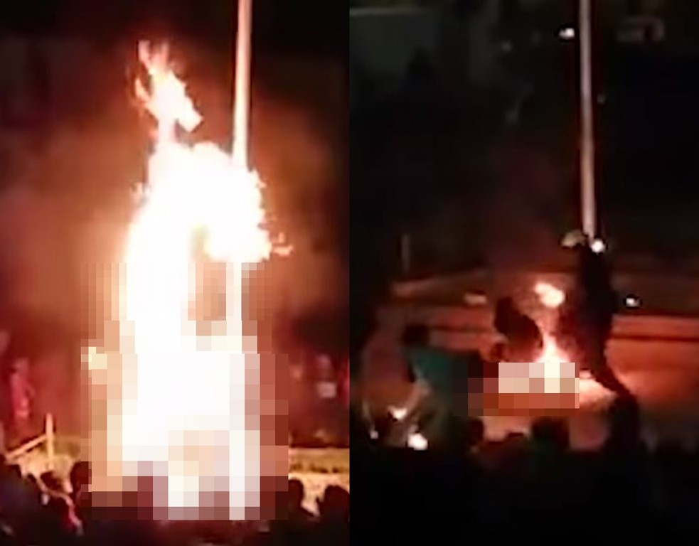 ▲綁柱子潑汽油放火!800村民「私刑」偷車賊,誇張火焰秒噴2米高。(圖/翻攝自liveleak/Viking Marauder)