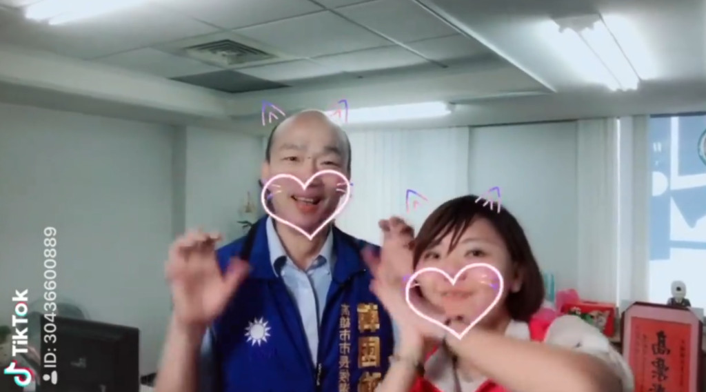 民進黨近日針對韓國瑜頻開砲,邱于軒至高雄市黨部幫忙加油打氣,認為選戰不該只是抹黑攻擊,為轉換心情,還邀韓國瑜一起玩抖音,畫面中韓國瑜儘管動作生硬,但仍相當配合,還笑說「禿子學喵叫!效果太奇妙」