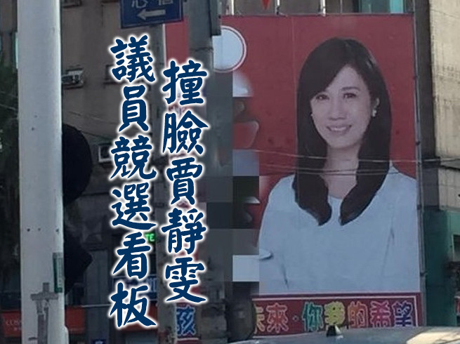 原PO貼出桃園一個路口的競選看板,「今年選舉我決定投給賈靜雯」,還說看板上的人比電視中還美。紅色的看板上,一個神似賈靜雯的候選人面對鏡頭微笑著,左邊一排小字寫著,「桃園市議員候選人」,乍看之下還真的以為藝人賈靜雯要出來參選議員。
