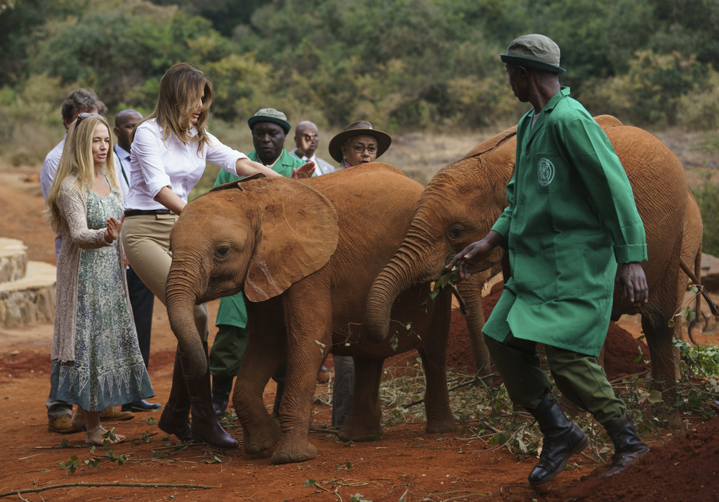 梅蘭妮亞此次出訪會到迦納、馬拉威、肯亞及埃及等非洲4國,5日下午則來到肯亞奈洛比國家公園(Nairobi National Park)。 她神情自若的與園區內的大象一起互動,除了餵小象寶寶喝奶,也看了很多野生動物,而這當中發生了一起有趣的小插曲。