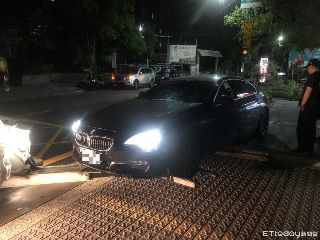 ▲警方派出拖吊車,將唐男的轎車拖回派出所。(圖/記者趙永博攝)