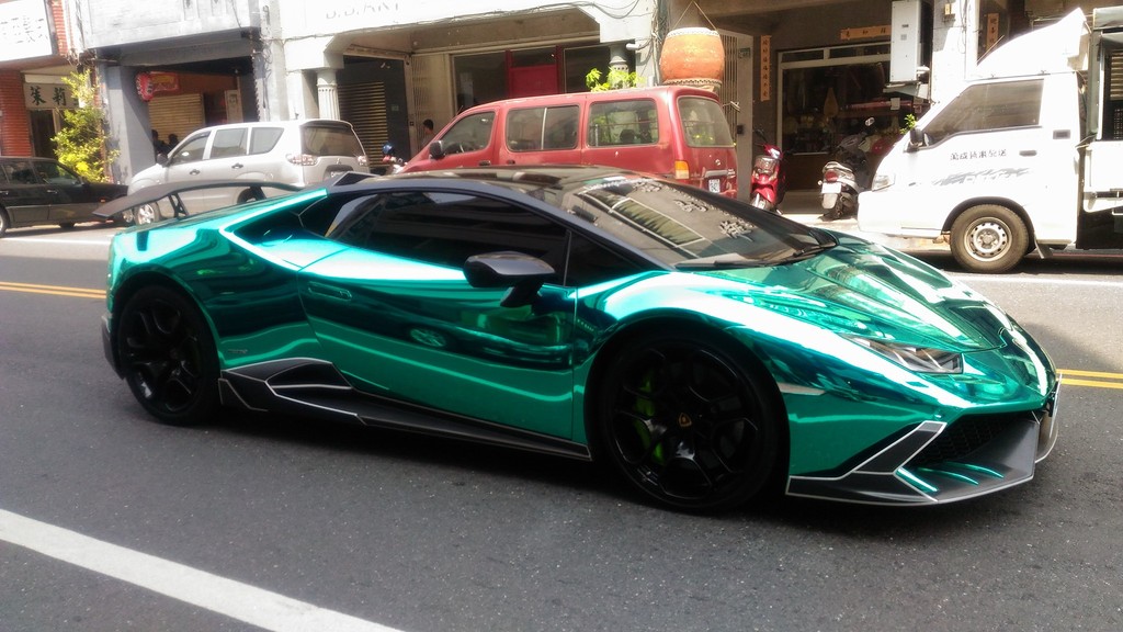 根據網友拍下的2張街景照片分析,地點位於台南市中西區民權路二段、公園路交叉口,一輛綠寶石色的藍寶堅尼(Lamborghini)「小牛」Huracan LP 610-4降臨,一台要價新台幣1500萬元左右,搶眼的色澤讓人不特別行注目禮都難!
