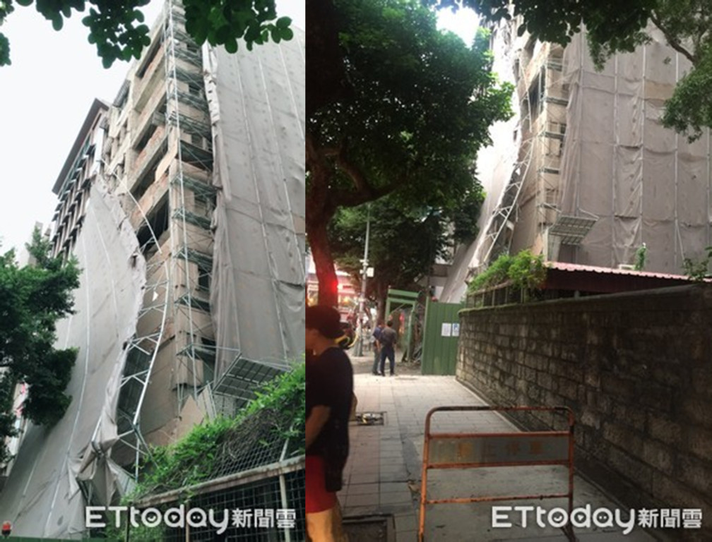 北市中正區公園路健保大樓整修工程的外牆鷹架,7日下午17時10分左右突然發生倒塌傾斜,幾乎「整面掉下來」,造成部分建材掉落引發路人圍觀,民眾驚慌趕緊打電話報警處理。北市消防局及轄區中正一分局都派員到場戒備,所幸警消到場並未發現這起意外有造成人員傷亡,也未影響交通,消防局及轄區中正一分局派出人車到場警戒,警方已通知施作廠商到場處理中。