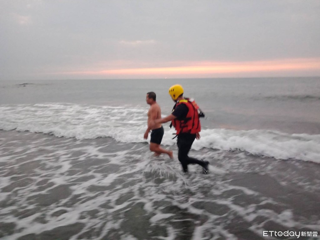 ▲台南市南區黃金海岸海邊,10月7日傍晚傳出有人溺水,台南市消防局出動消防人員下海將該名溺水遊客救援上岸,幸無大礙。(圖/記者林悅翻攝,下同)