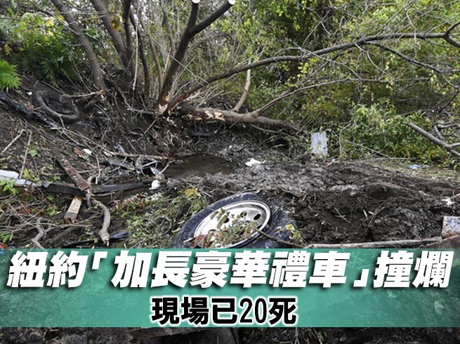 ▲紐約州加長禮車車禍已知20死,車輛零件散落一地。(圖/達志影像/美聯社)