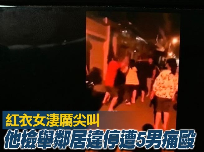 這是被民眾用手機錄下的影片,隨後被上傳放到網路社團「爆料公社」當中,地點是在高雄市大寮區,上頭還加註了「檢舉鄰居違停被抓包?!眾人圍上前興師問罪引爆肢體衝突,敦親睦鄰與違規檢舉,該怎麼拿捏」?