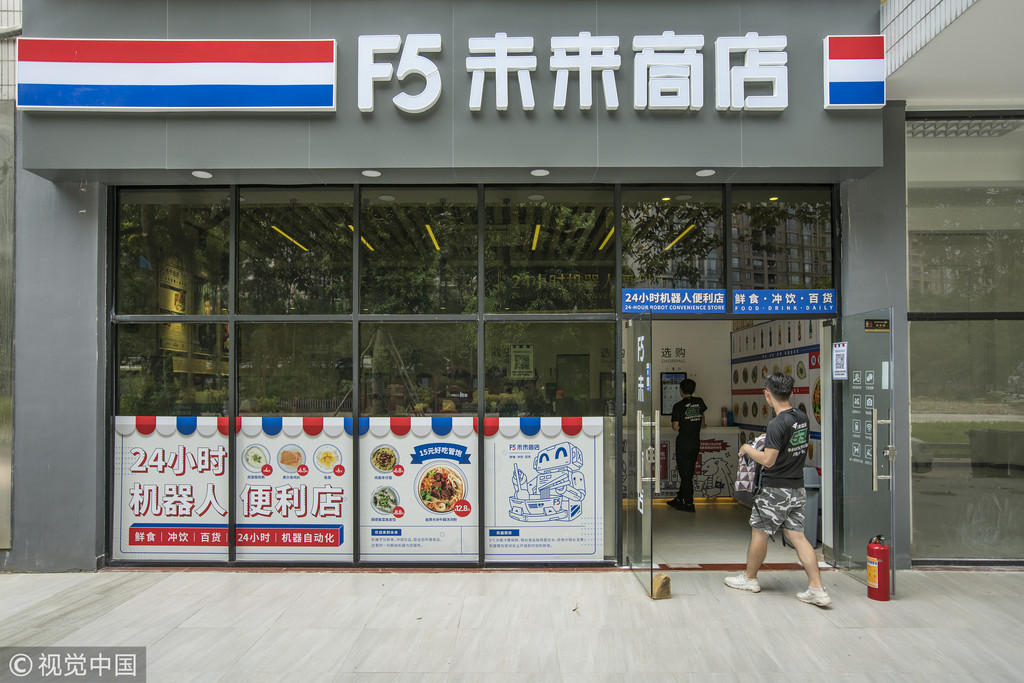 ▲廣州10名大學生集資開設未來商店,主打「24小時機器人」的智能便利商店。(圖/CFP)