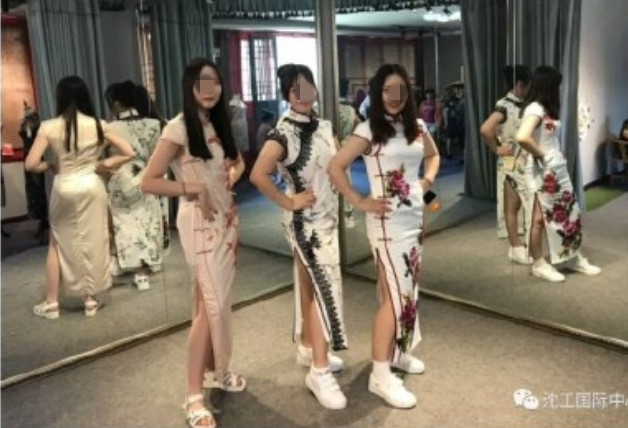 有網友po出一張「瀋工國際中心」微信公眾號的文章,內容是其國際教育學院講述招收留學生的學伴,並在前言寫道,「想不想接觸瀋陽工學院留學生們?」下方放上女學生穿著開高衩的中國旗袍照,雙手叉腰對鏡頭甜甜一笑。