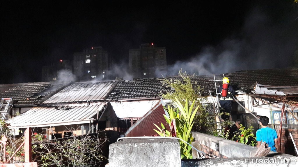 ▲被文資局列入保留的東港共和新村7日深夜再傳火警,警查是否人為。(圖/記者陳崑福翻攝)