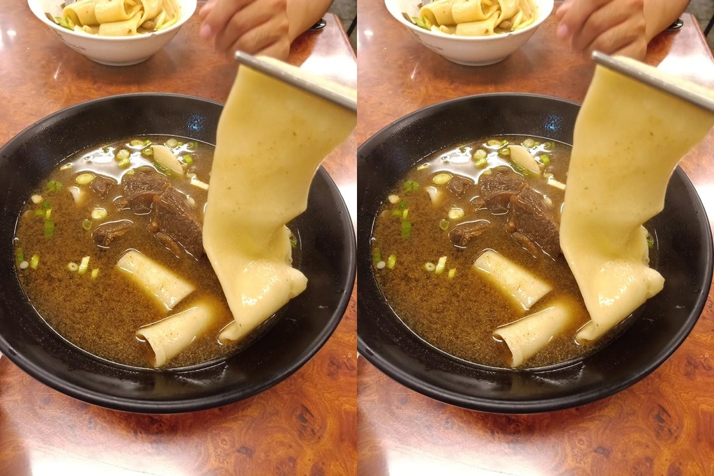 女網友在臉書「爆怨公社」社團中貼文,「吃飯時間到了!點一碗牛肉麵」,老闆問她想要吃寬麵還是細麵?她回答想吃寬麵,「老闆端來…我笑了!老闆好小氣,麵只放一條而已」,她開玩笑地說。整碗麵裡竟只有一條麵,但這條麵可不是小角色,原來這是「皮帶麵」,又粗又Q讓她直呼超好吃。