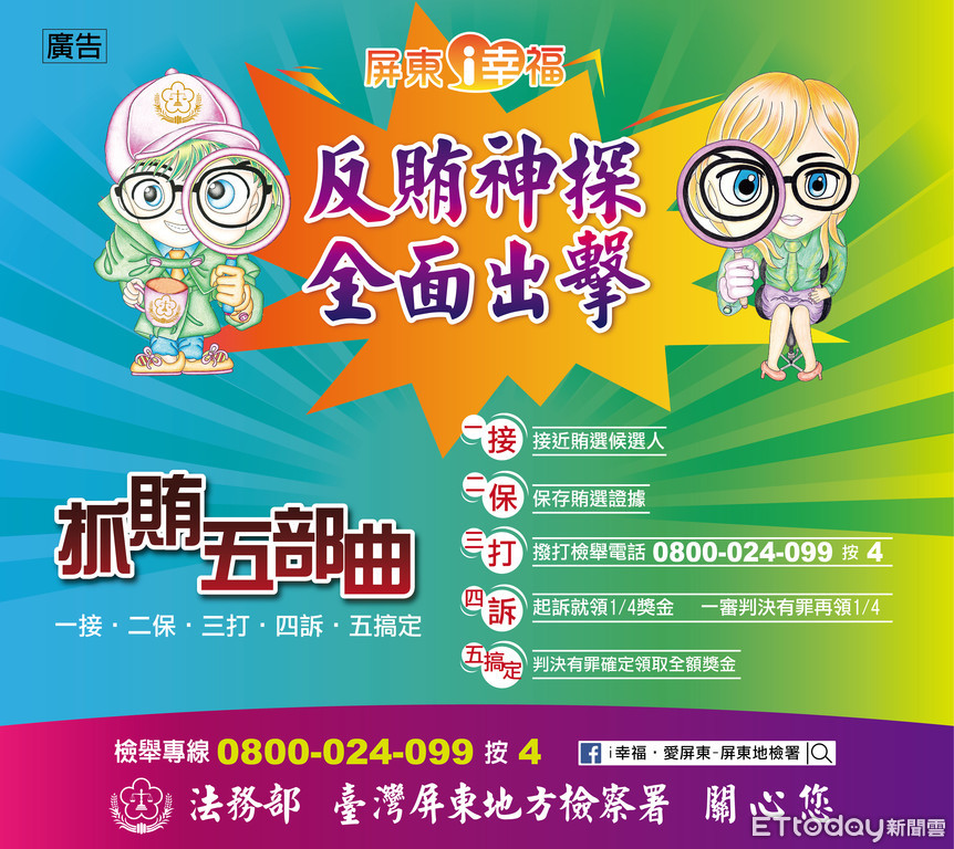 屏東地檢署宣誓反賄選Q版神探「阿村、小莉」大型看板,經由受刑同學巧手完成,懸掛在地檢署辦公室外牆,由於造型相當可愛,非常吸睛,引來討論,收到反賄選效果。