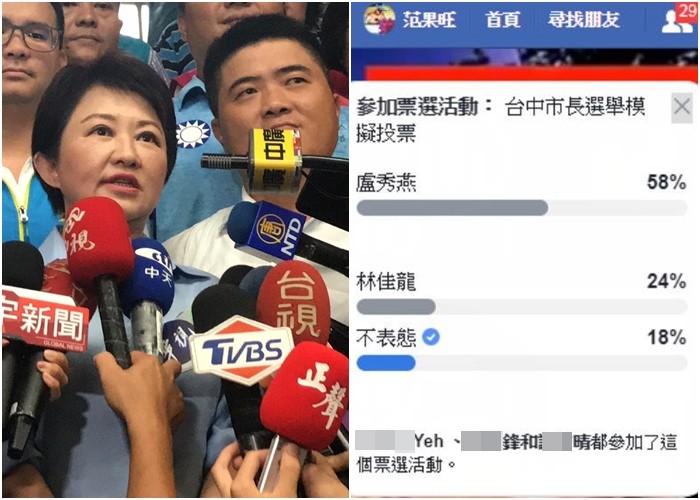 ▲爆料公社模擬投票,盧秀燕從4000多網民手中拿下58%支持率。(圖/資料照、翻攝爆料公社)