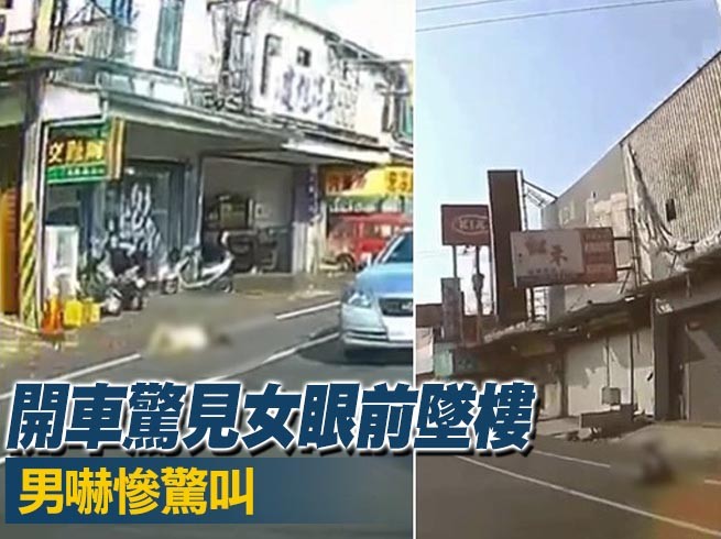 畫面中只見,男駕駛車子一右轉彎,就看到右前方有東西高處墜落,仔細一看竟然是人,嚇得趕緊報案,女子墜落後,一動也不動倒在地上,相當嚇人。