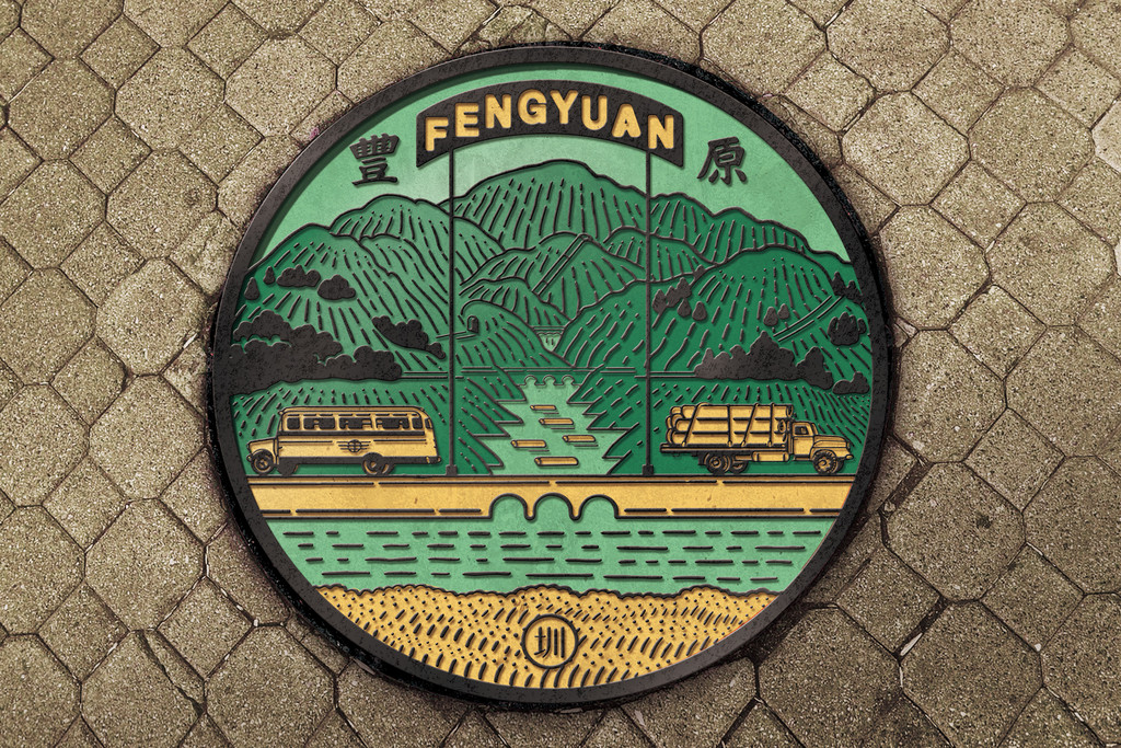 「農人與丘陵幻化為太平的豐饒之境,層層的羽毛疊成丘陵的樣子。」繼綠川廊道計畫後,原本鐵灰色的舊人孔蓋透過年輕畫家們的畫筆,有了「花草的氣息、土地的豐味」,用插畫為老城闡述故事。3位出身台中、洄游台中的插畫家鄒駿昇、陳姝里和川貝母,耗時4個月設計,為台中打造出腳下最美的風景。