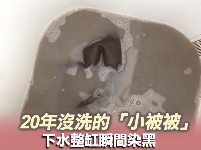 許多人都有一件離不開身的小被被,還會堅決不讓媽媽拿去洗。一名網友在臉書「爆廢公社」社團中貼文,他的小被被陪伴他20年了,從來不曾洗過,在他們相遇20周年的這一天,他終於將被被放到水中好好清洗一番,沒想到整缸的清水瞬間被染黑,超噁照片讓網友們都驚呆了。