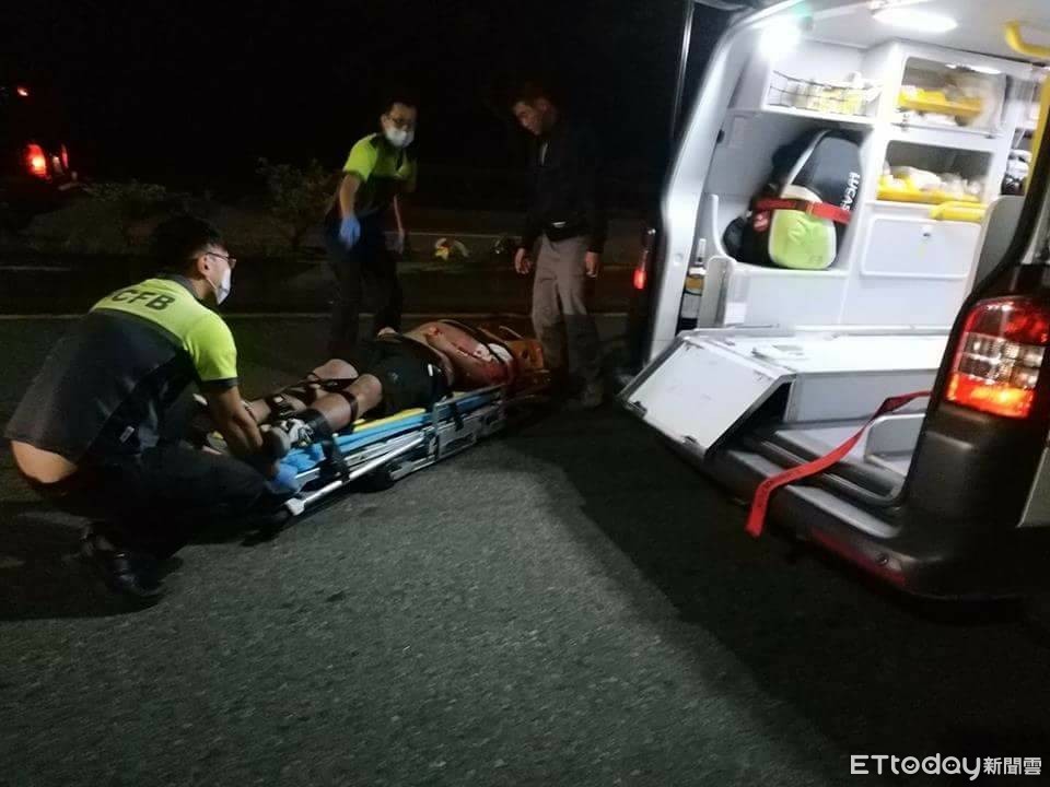 ▲機車騎士遭撞擊後幾分鐘已經失去意識,目前仍在醫院搶救中。(圖/記者陳凱力翻攝)
