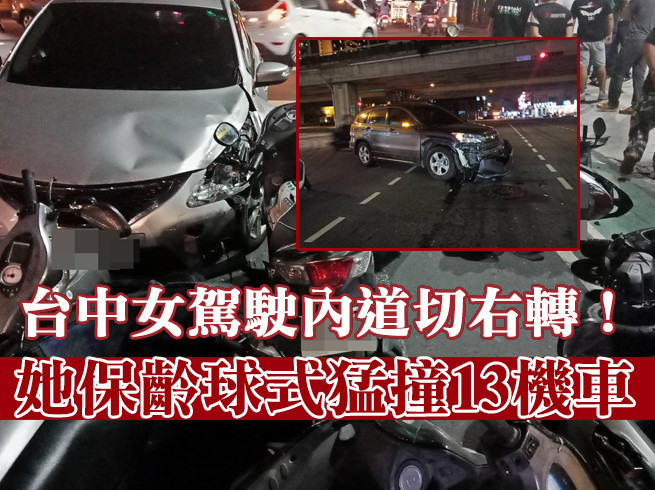 警方指出,34歲的劉女沿著環中路匝道直行,從內側直接切出要右轉西屯路三段,導致32歲的林女直行閃避不及,直接撞上劉女的車後噴出到對向的機車群,導致連同兩車駕駛,共14人;2名傷勢較重的騎士送醫,其他受傷民眾皆輕傷拒送。