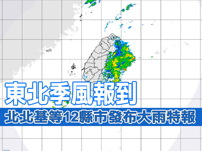 中央氣象局在下午2點10分發布另一波大雨特報,包括了台北市、新北市、基隆市、雲林縣、南投縣、嘉義縣市、台南市、高雄市、屏東縣、宜蘭縣和花蓮縣等12縣市發布大雨特報,南投以南是受到午後對流發展旺盛影響,易有短時強降雨,宜花、北海岸和大台北地區則是受東北季風增強影響,有局部大雨發生的機率,請注意。