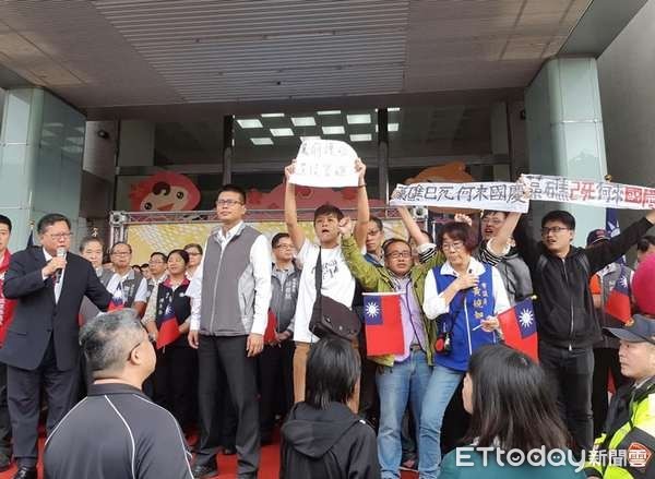 ▲護礁人士衝上台,桃園市國慶升旗典禮變調。(圖/擷取自朱梅雪臉書)