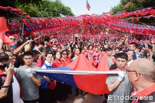 ▲鄭文燦、陳學聖相遇民間版國慶牽手升旗活動,力爭泛藍選票。(圖/桃園市政府提供)