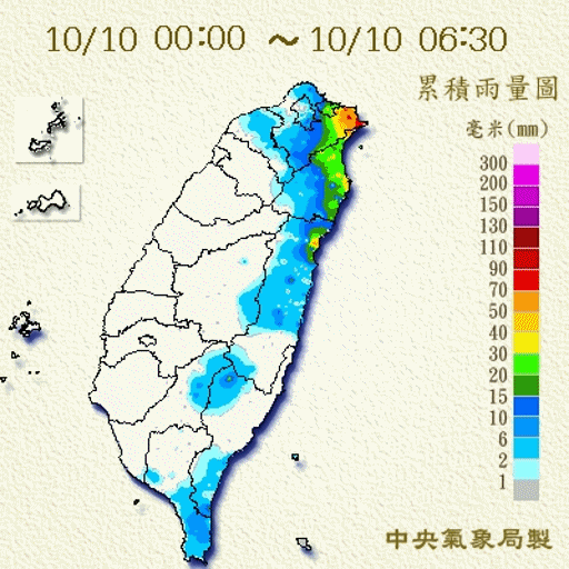 10日晚間7時45分,氣象局升級豪雨特報,受東北風影響,易有短時強降雨,入夜至11日基隆北海岸將有局部大雨或豪雨發生機率,宜蘭地區及大台北山區有局部大雨;另外,台南以北、東半部、恆春島及金馬澎沿海空曠地區易有8至10級強陣風。