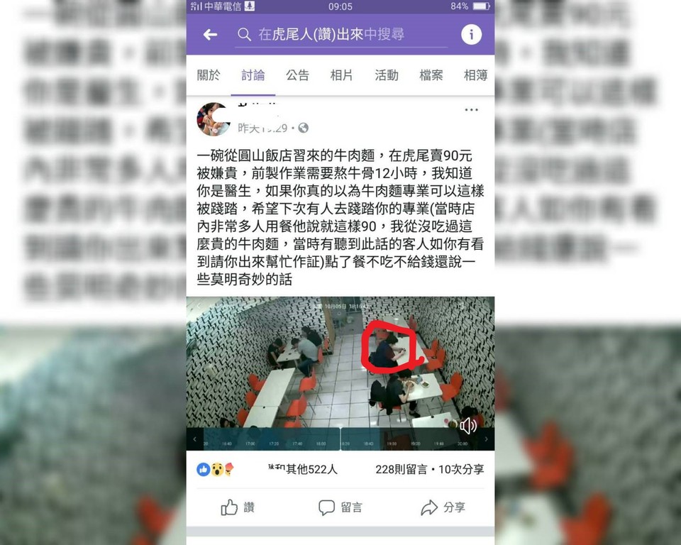 ▲醫師叫碗90元牛肉麵上桌嫌貴走人,被店家在臉書PO網登出監視器畫面。(圖/翻攝Facebook虎尾人(讚)出來)