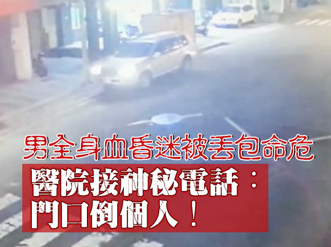 台中11日凌晨12點半,中清路上有1名男子全身是血被丟包在全民醫院前變電箱旁,院方隨後接獲男子打電話「你們門口倒一個人」即掛斷電話,受傷男子送往中國附醫急救,目前仍昏迷中。警方表示,該男子身上沒身分證件,目前正在釐清身分及事發過程。