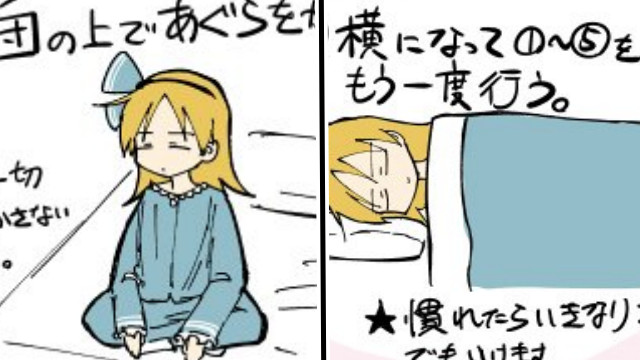 おのでらさん將這套抗失眠步驟畫出來,獲得網友熱烈反應,並將這種類似冥想的方法取名為「愛麗絲式睡眠法」(取自作者連載漫畫中的登場人物「愛麗絲老師」),據說只要跟著步驟做,每天就能在10分鐘之內快速入眠,從此擺脫失眠煩惱,一起來看看怎麼做吧!