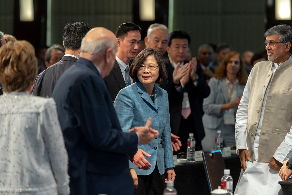 蔡英文提到,諾貝爾和平獎得主沙提雅提(Kailash Satyarthi),在獲獎的時候曾經提到,「在追求世界進步的道路上,世界上沒有任何人應該被拋在後方。」