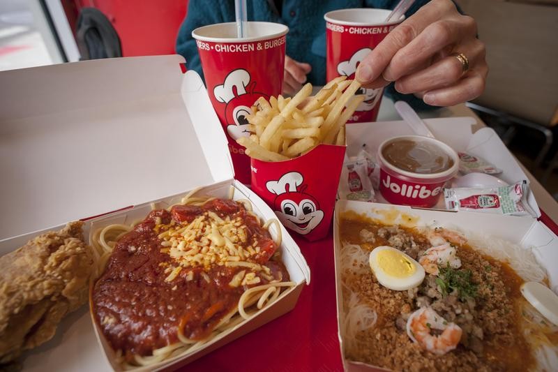 在菲律賓分店超過1,000家分店的「快樂蜂」(Jollibee)提供菲式速食,除了炸雞漢堡,還有米飯、米粉、春捲跟義大利麵,更把餐點口味調整成菲律賓人偏愛的酸甜,分店數在菲律賓境內不僅遠超過麥當勞,還拓點全球,一解海外菲律賓人的鄉愁。