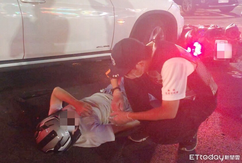 ▲▼高雄晚間發生一起機車追撞汽車交通事故,警消獲報處置,將傷者送醫。(圖/記者宋德威攝,下同)