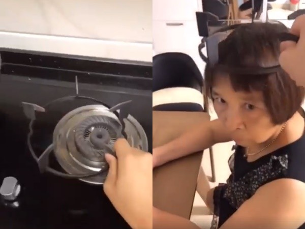 「金箍戴上之後你就再也不是凡人」拍攝者配上台詞,在把瓦斯爐框戴上後,媽媽的眼神透露出寒冷的殺氣,彷彿頭上著了火一般生氣,讓人看完都怕。