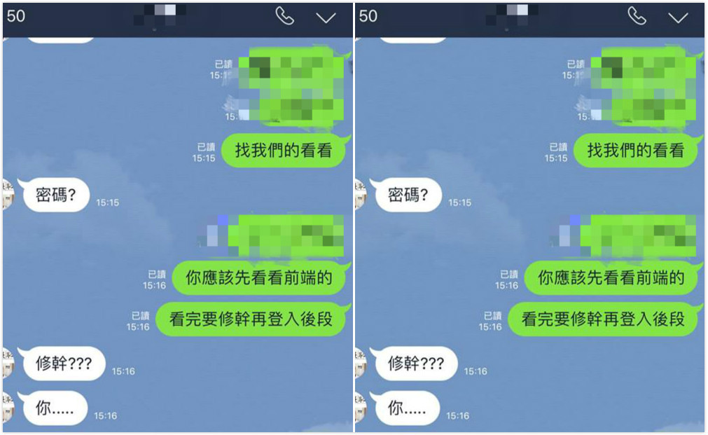 女網友今在爆怨公社po文提到,「請老闆去看一下我打的資料可不可以,結果被自動選字陰了,我應該怎麼面對老闆呀,求陰影體積。」從對話中可見,老闆向她索取密碼後,她迅速回覆,建議對方先看前端的,等修改完再登入後段。