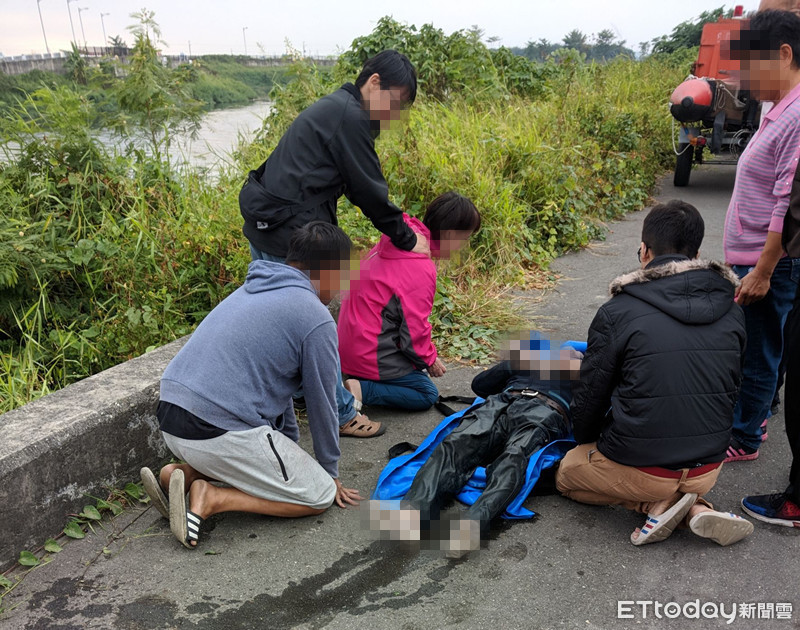 ▲消防人員將屍體打撈上岸,家屬見到死者十分悲痛。(圖/記者林悅翻攝)