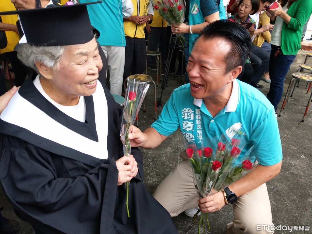 ▲▼ 中埔鄉裕民社區開辦長照據點打造學院風格,設計動靜態成果展,長輩穿學士服粉墨登場。(圖/記者翁伊森攝,下同)