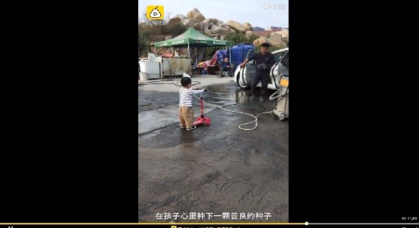 山東青島一名2歲小男童與媽媽散步時路過洗車行,並在得知這是「給車子洗澡」的地方後,也想洗自己的滑板車。不過還沒輪到他只好排隊等待,老闆忙完後果然馬上過來洗車,這畫面讓在旁媽媽相當感動。